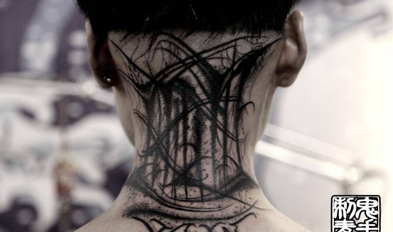 黑灰满背纹身图案