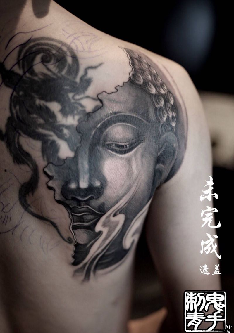 • 黑灰满背纹身图案