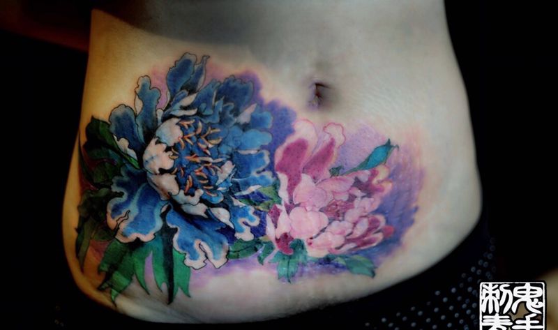 • 女性大花胸纹身_43张霸气漂亮的女性大花胸纹身图案作品