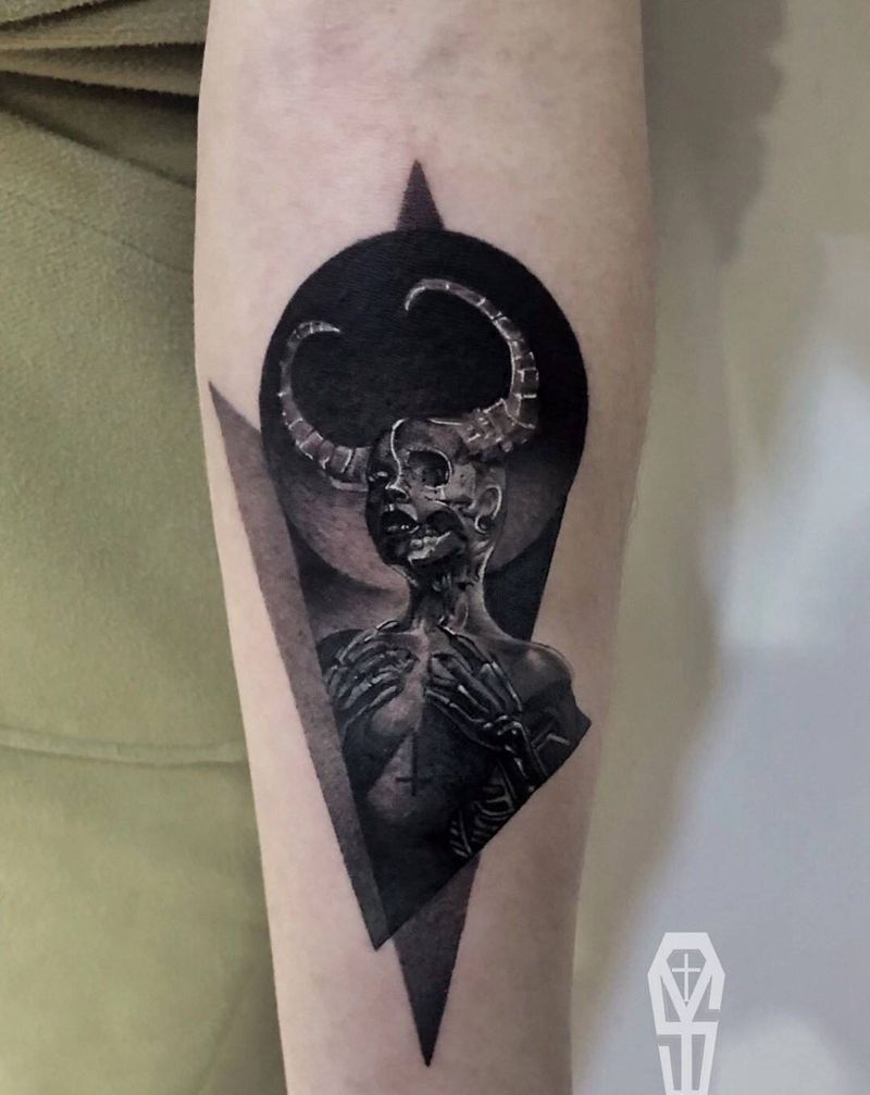 恶魔纹身图片_手臂欧美写实昆明纹身图案