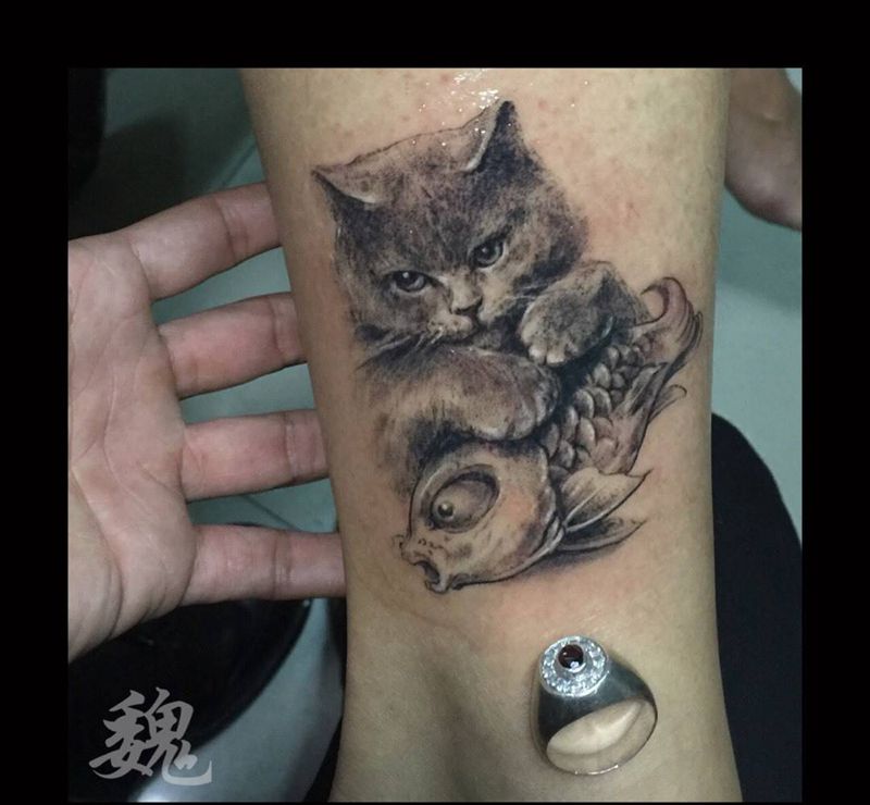当前位置: 首页 >云南省昆明市纹身店-和风刺青会所纹身图案>大脸猫纹身图片_动物飘逸写实脚部纹身图案