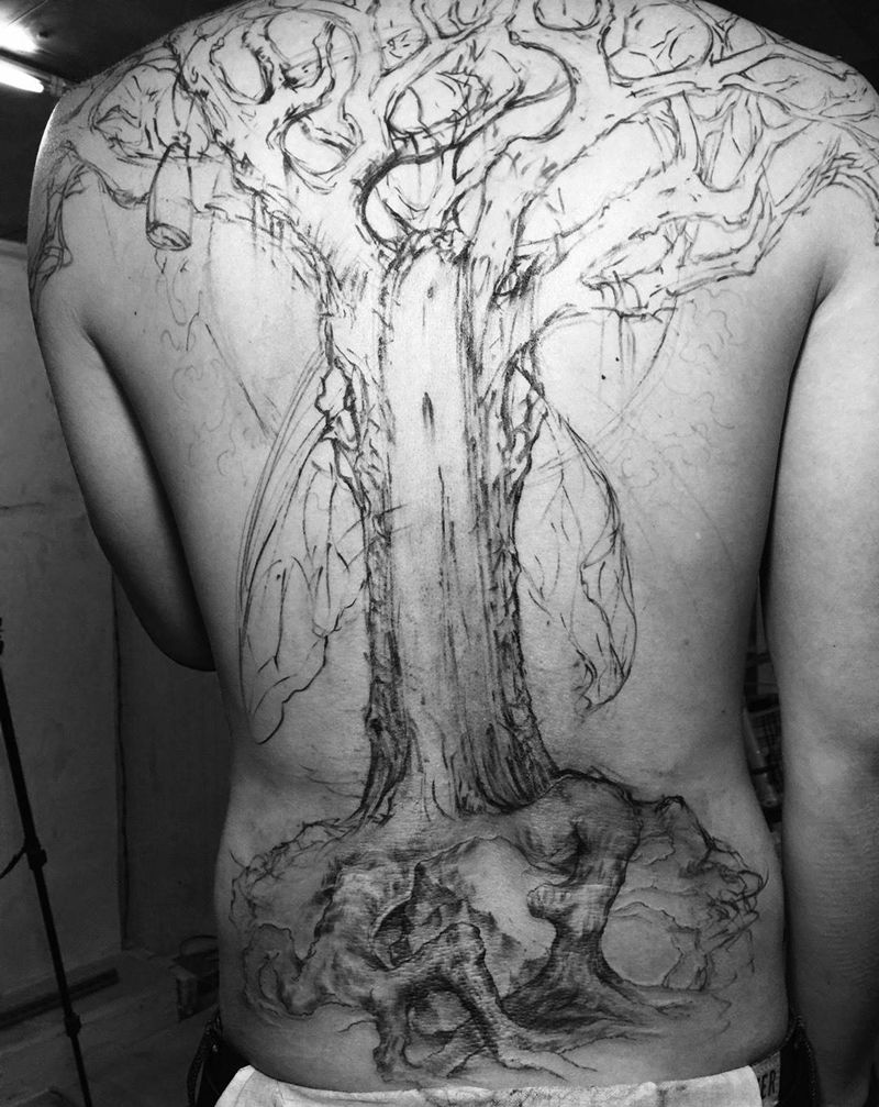 树纹身图片_写实飘逸原创背部纹身图案
