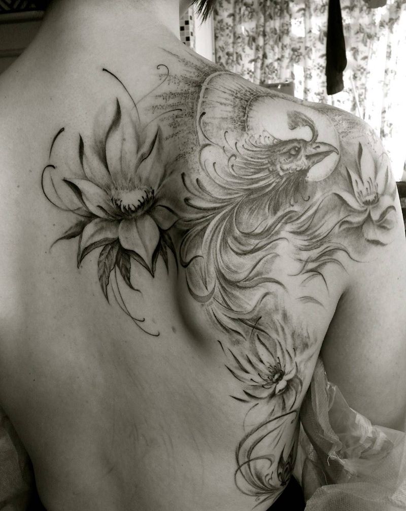当前位置: 首页 >云南省昆明市纹身店-和风刺青会所纹身图案>凤纹身图片_原创飘逸背部纹身图案