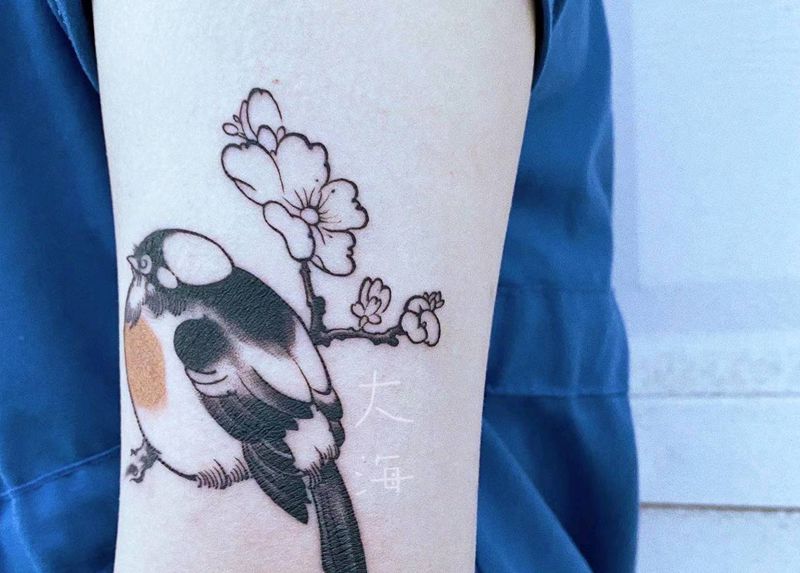 当前位置: 首页 >云南省昆明市纹身店-药刺青纹身图案>小胖雀纹身图片_手臂新传统梨花纹身图案