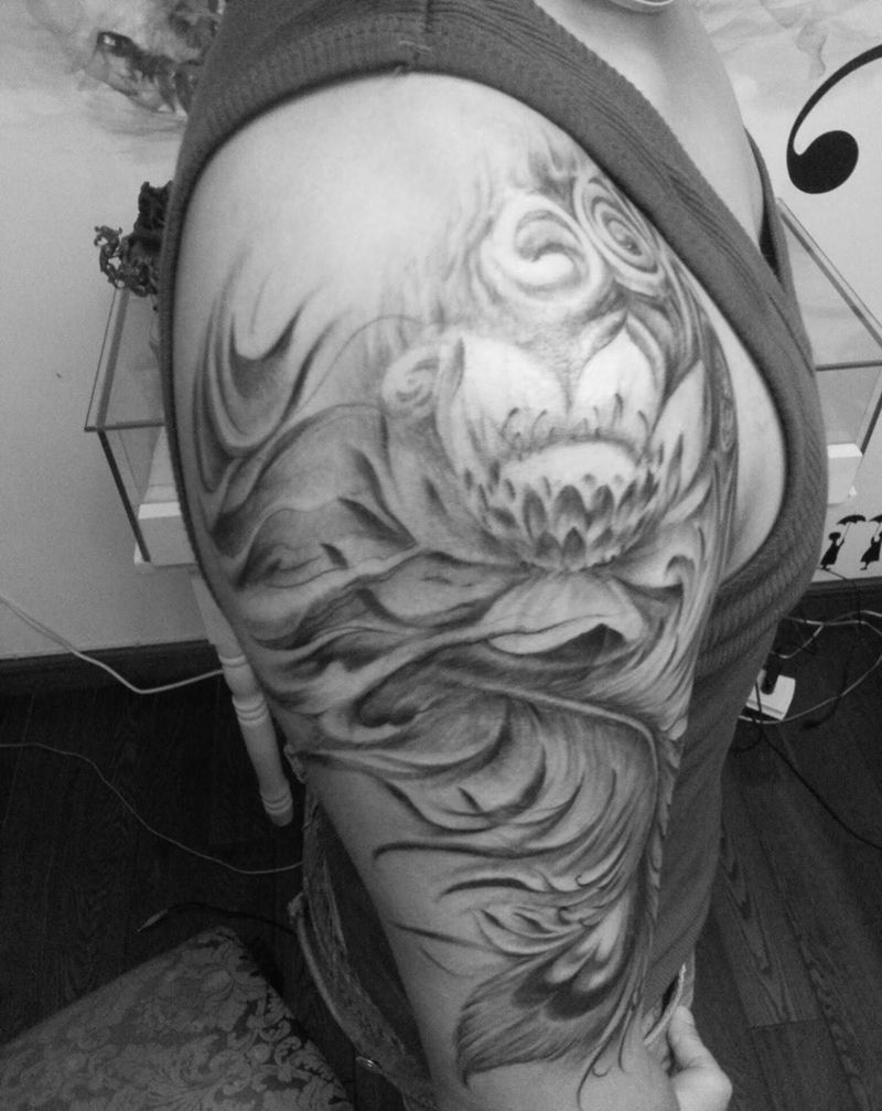 当前位置: 首页 >云南省昆明市纹身店-和风刺青会所纹身图案>荷羽纹身图片_手臂肩部成品清新植物飘逸原创纹身图案