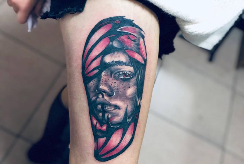 当前位置: 首页 >云南省昆明市纹身店-肆野纹身工作室纹身图案>写实肖像纹身图片_腿部欧美写实纹身图案