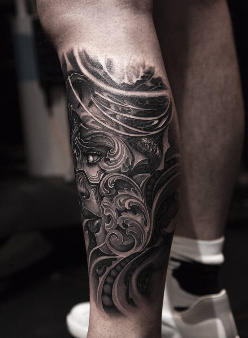 黑灰满背纹身图案
