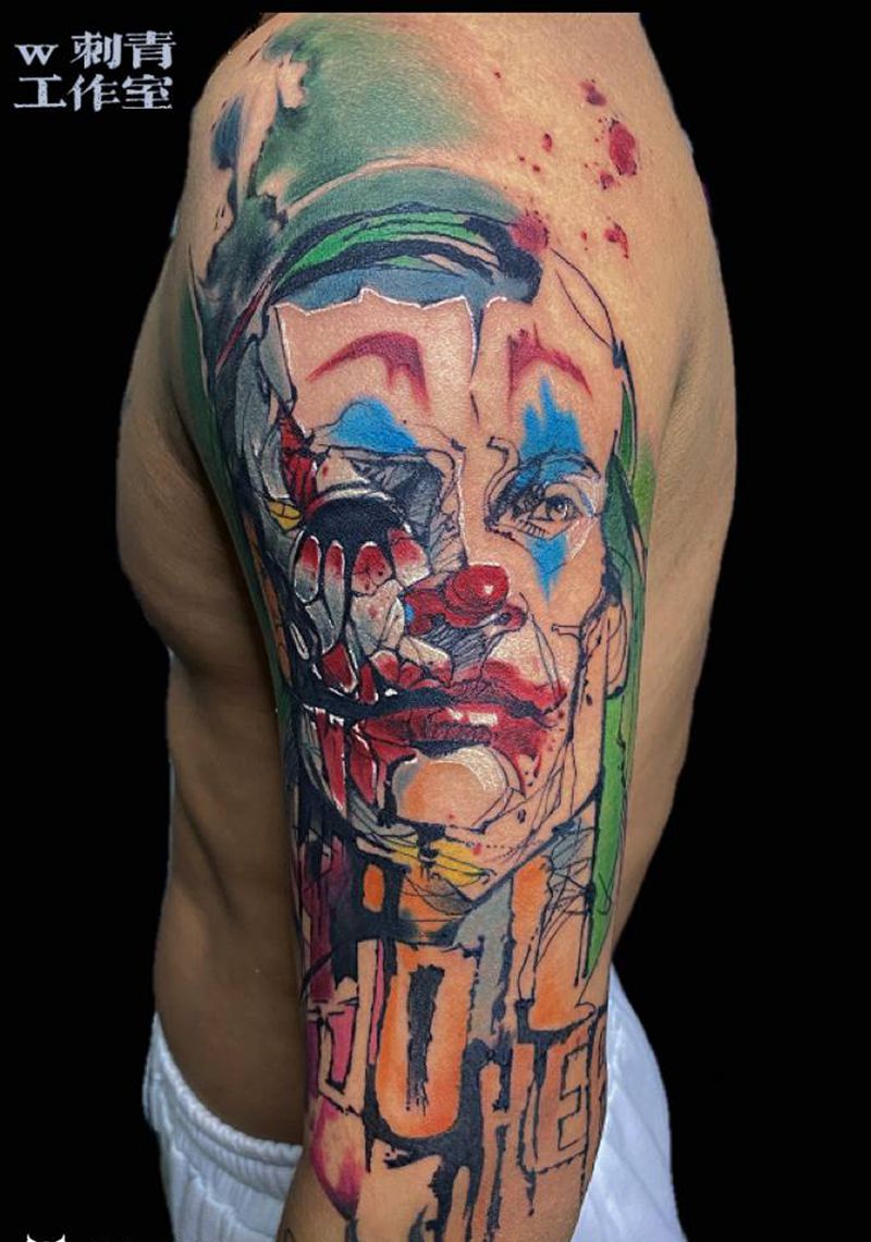 当前位置: 首页 >云南省昆明市纹身店-W刺青工作室纹身图案>客人自带水彩小丑图纹身图片_手臂水彩纹身图案