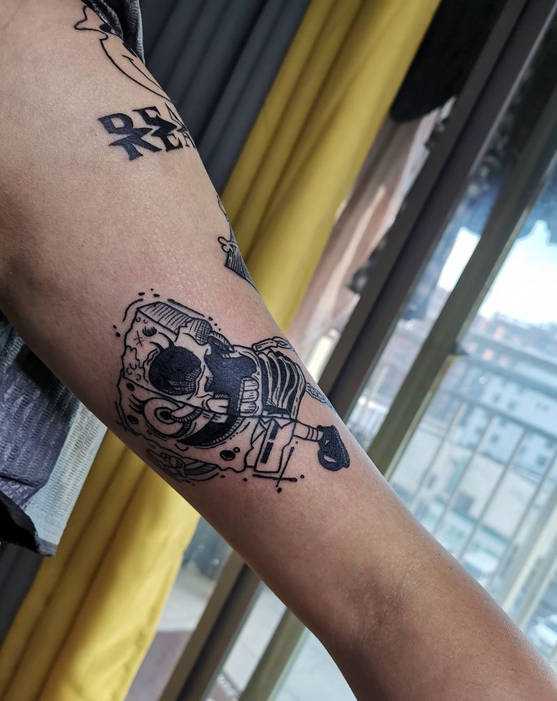 当前位置: 首页 >云南省昆明市纹身店-W刺青工作室纹身图案>小图拼接纹身图片_手臂New School纹身图案