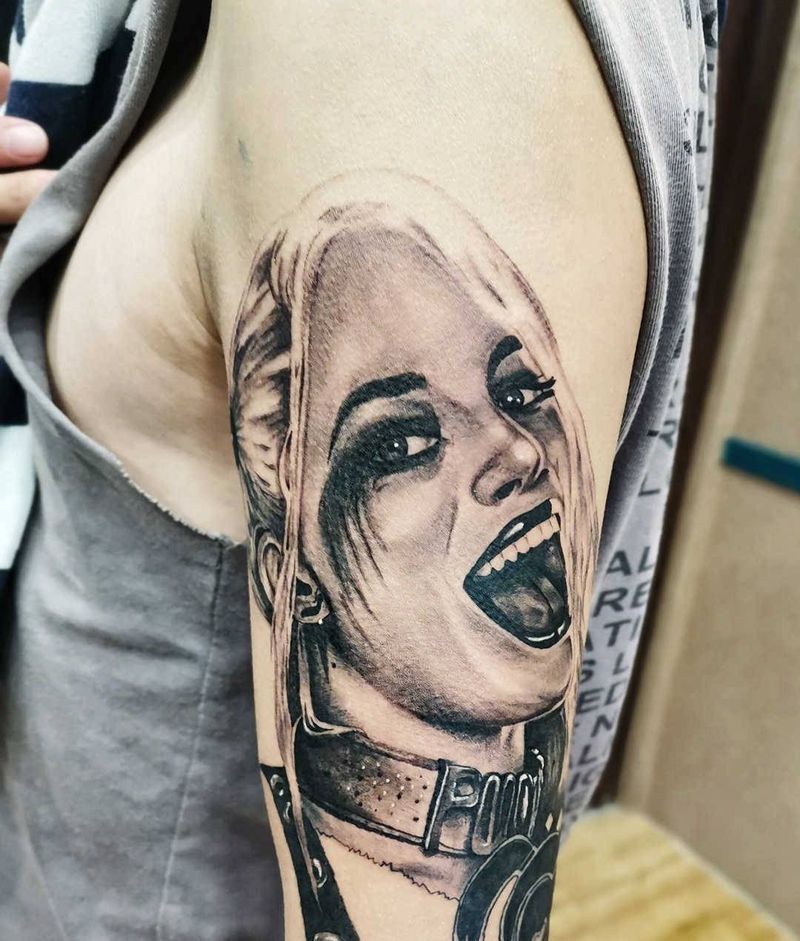 素描小丑女纹身图片_手臂欧美写实纹身图案