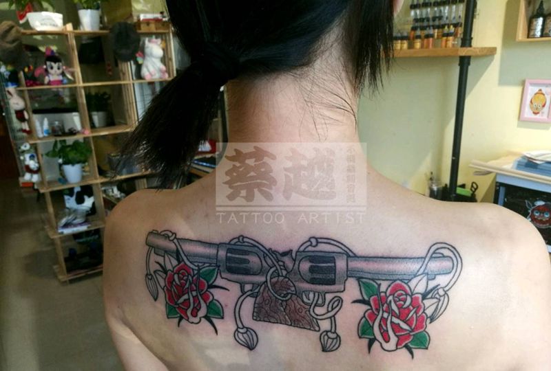 Guns 'N Roses纹身图片_背部欧美传统原创成品纹身图案