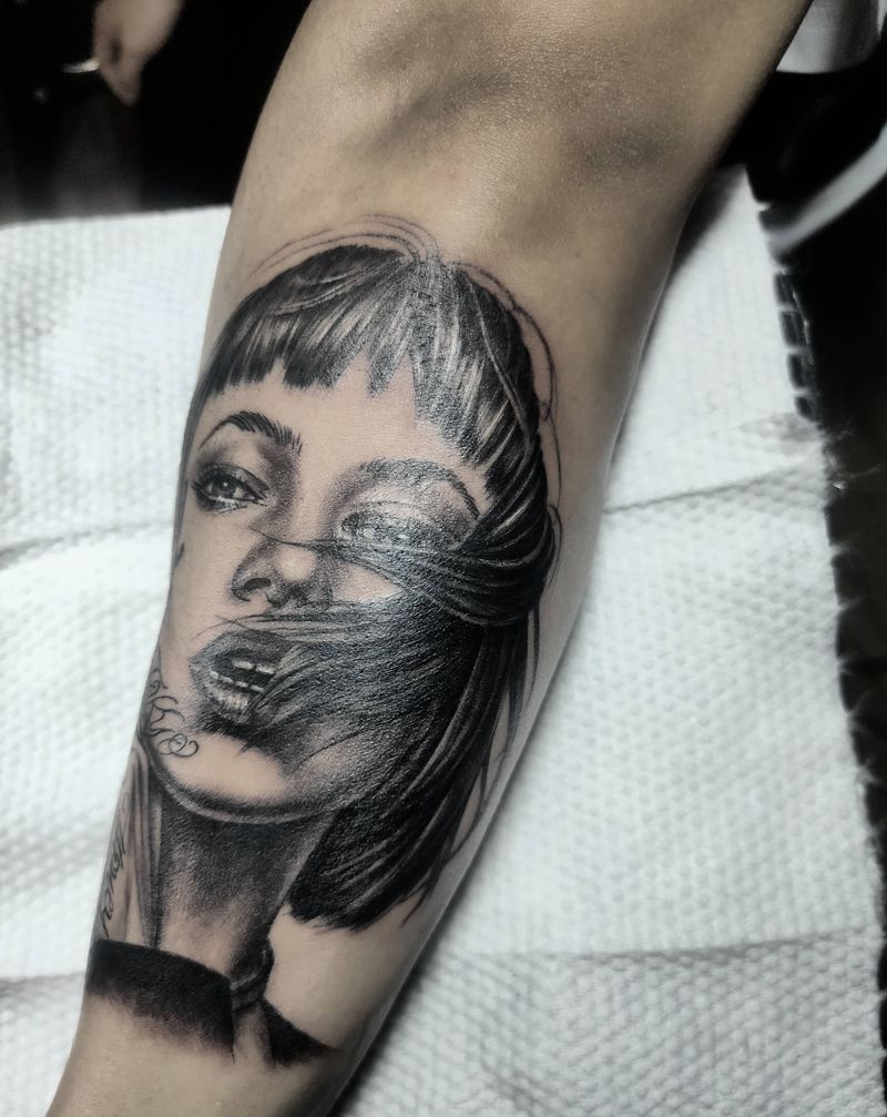 当前位置: 首页 >云南省昆明市纹身店-南無文畫刺青工作室纹身图案>小臂头像纹身图片_手臂欧美写实纹身图案