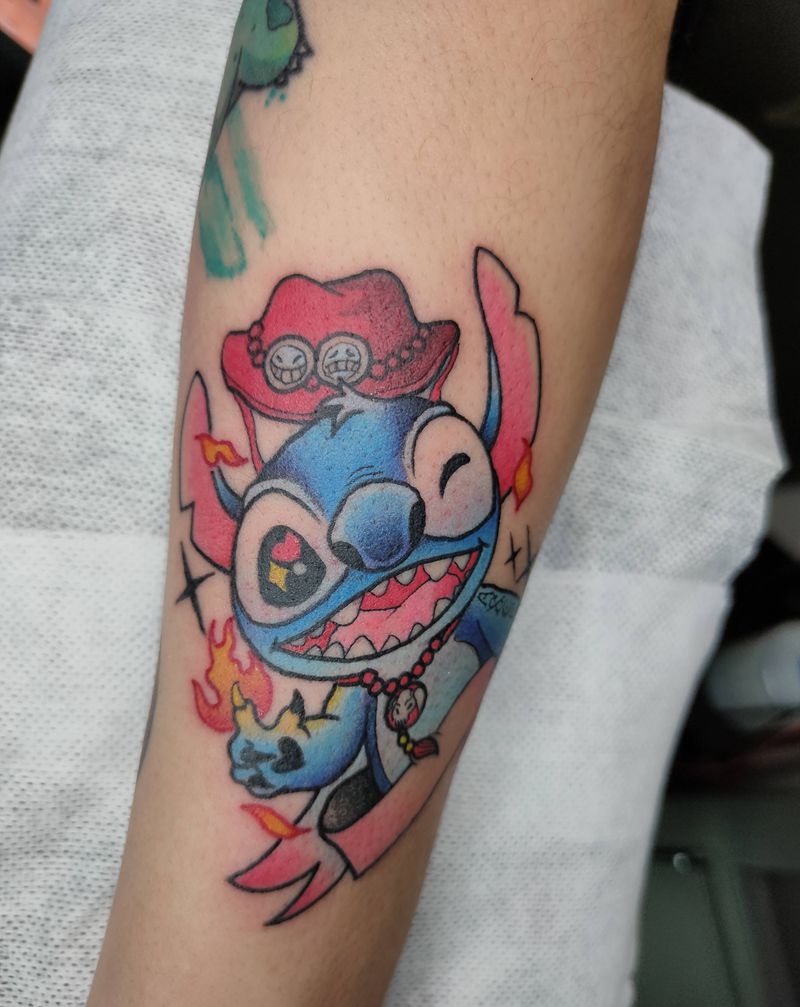 • T包小腿吹火男+阿多福纹身图片_腿部老传统新传统吹火男阿