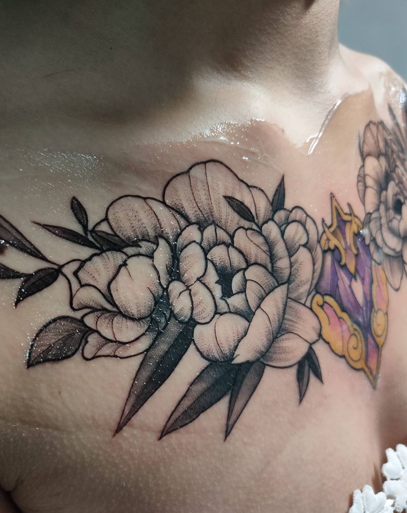• 女性大花胸纹身_43张霸气漂亮的女性大花胸纹身图案作品