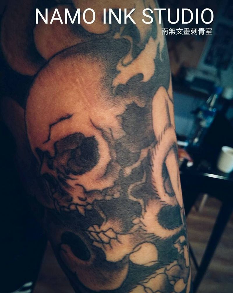 当前位置: 首页 >云南省昆明市纹身店-南無文畫刺青工作室纹身图案>九尾狐纹身图片_手臂传统鬼神成品手稿纹身图案