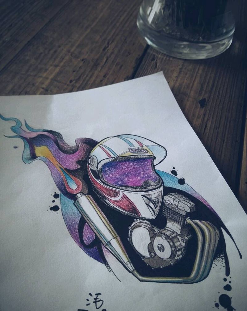 机车头盔纹身图片_手臂清新原创励志机车成品手稿纹身图案