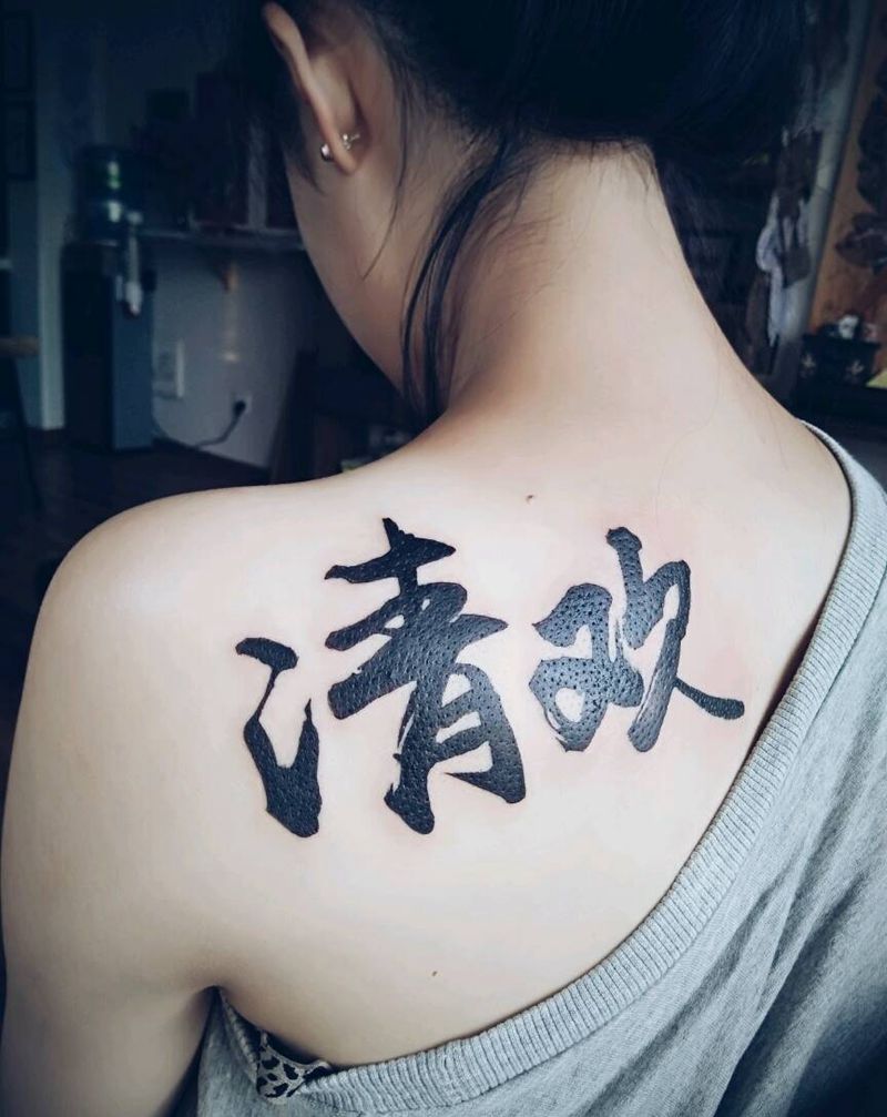 书法字体纹身图片_肩部传统国画字符原创书法成品纹身图案