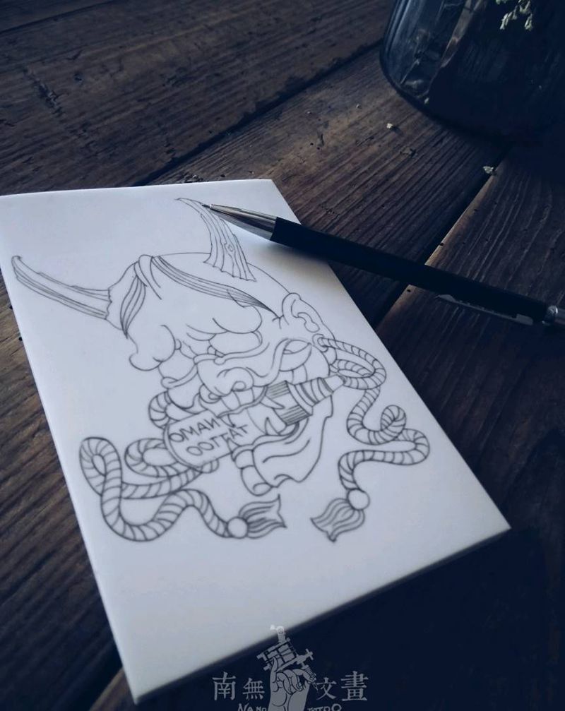 当前位置: 首页 >云南省昆明市纹身店-南無文畫刺青工作室纹身图案>般若面具纹身图片