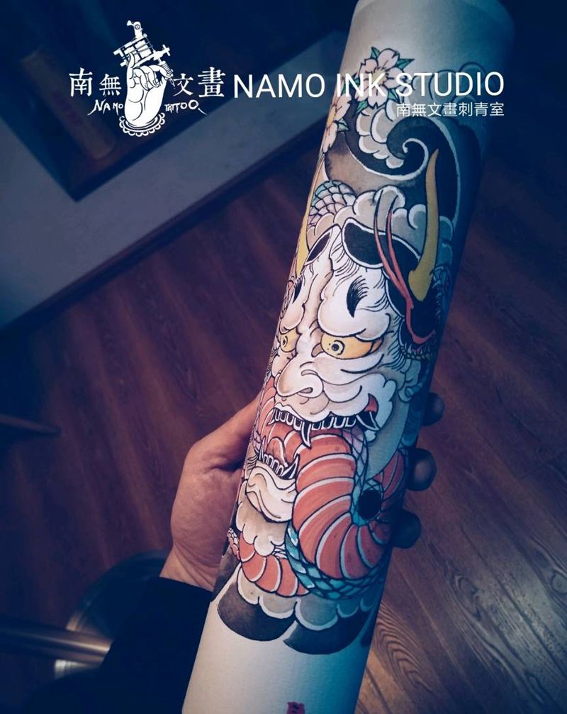 当前位置: 首页 >云南省昆明市纹身店-南無文畫刺青工作室纹身图案>小臂《般若》设计纹身图片_手臂传统鬼神般若手稿纹身图案