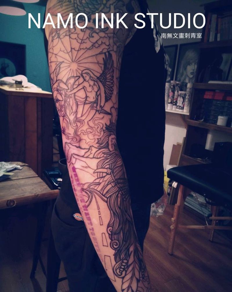 当前位置: 首页 >云南省昆明市纹身店-南無文畫刺青工作室纹身图案>混搭元素花臂纹身图片