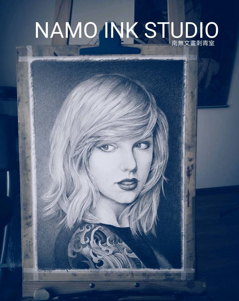 当前位置: 首页 >云南省昆明市纹身店-南無文畫刺青工作室纹身图案>素描练习《泰勒.斯威夫特》纹身图片