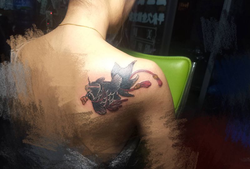 金鱼纹身图片_肩部背部金鱼纹身图案