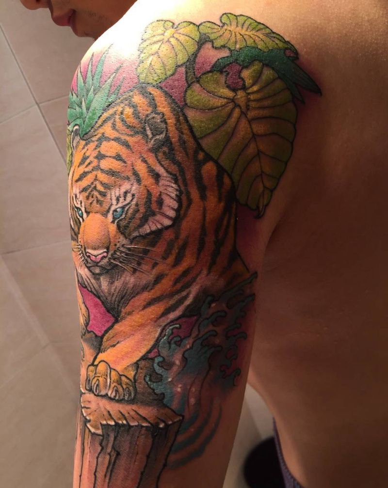 当前位置: 首页 >云南省昆明市纹身店-隼刺青纹身图案>心有猛虎细嗅蔷薇纹身图片_手臂欧美动物成品手稿植物原创纹身图案