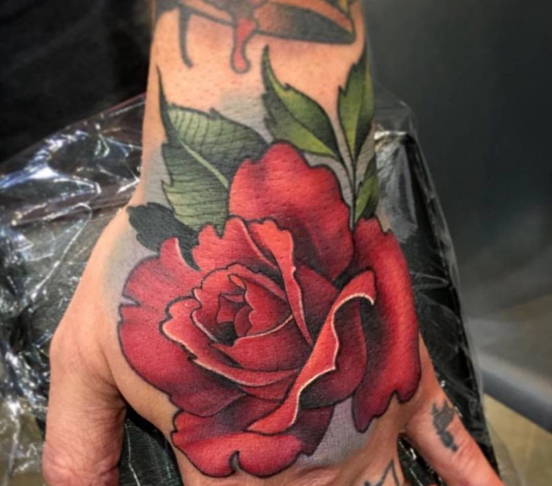 • 手背潮流时尚的玫瑰花眼睛纹身图案