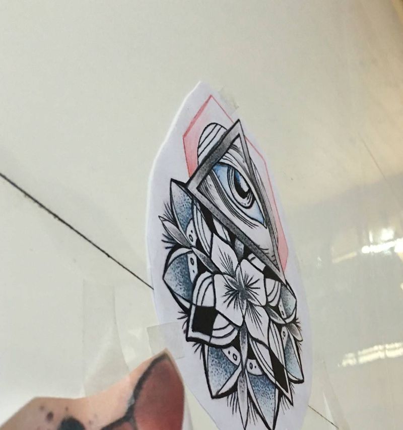 • 手背潮流时尚的玫瑰花眼睛纹身图案