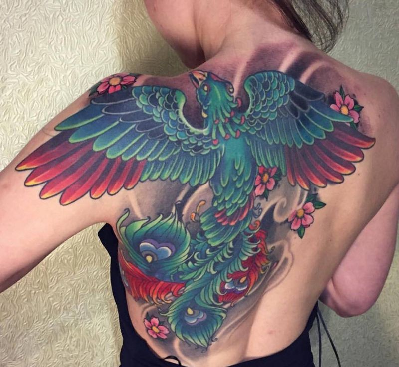 凤凰纹身图片_肩部成品传统动物纹身图案
