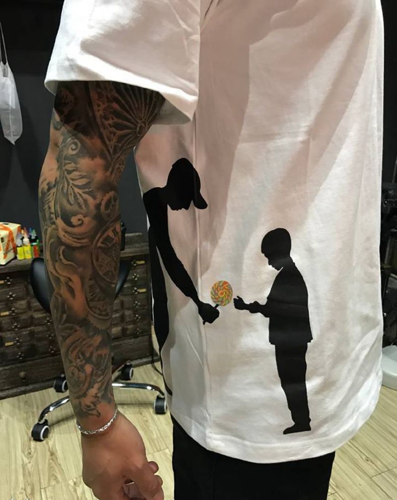 叔叔请你吃棒棒糖纹身图片_手臂欧美写实纹身图案