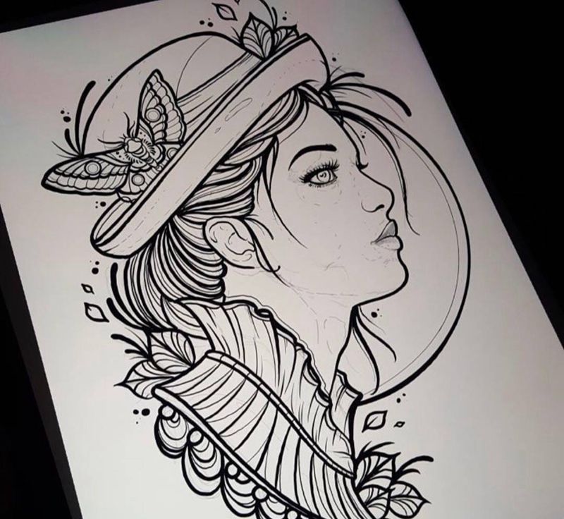 妞纹身图片_手稿欧美人物肖像纹身图案