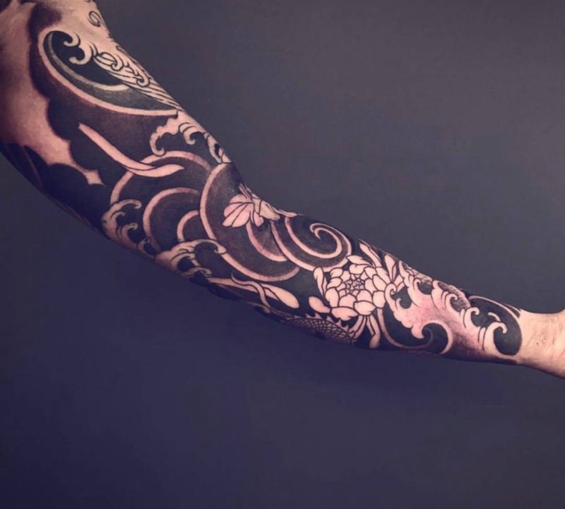当前位置: 首页 >云南省昆明市纹身店-五味刺青纹身图案>来让我溅你一手浪花。纹身图片_成品手臂传统纹身图案