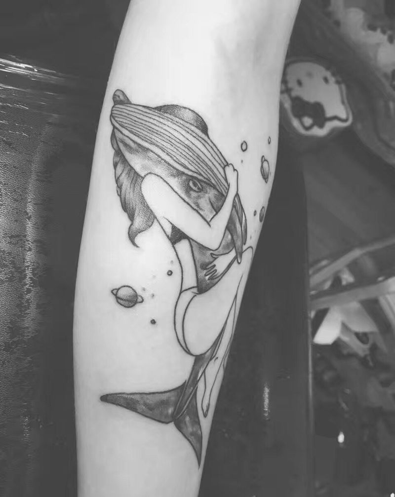 当前位置: 首页 >云南省昆明市纹身店-Yeci。Tattoo纹身图案>女孩鱼鲸纹身图片_原创成品手臂人物几何动物纹身图案
