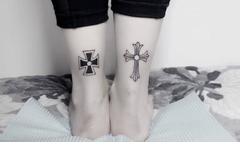 当前位置: 首页 >云南省昆明市纹身店-Yeci。Tattoo纹身图案>十字勋章纹身图片_成品脚部几何图腾情侣纹身图案
