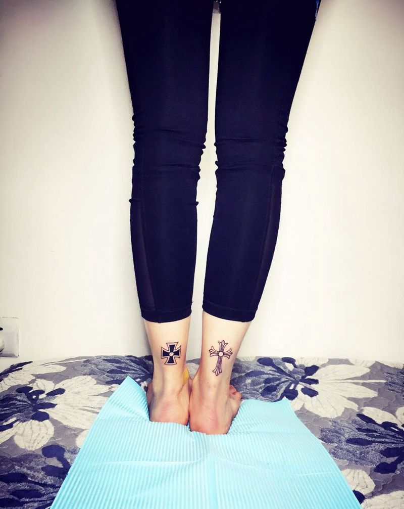十字勋章纹身图片_成品脚部几何图腾情侣纹身图案