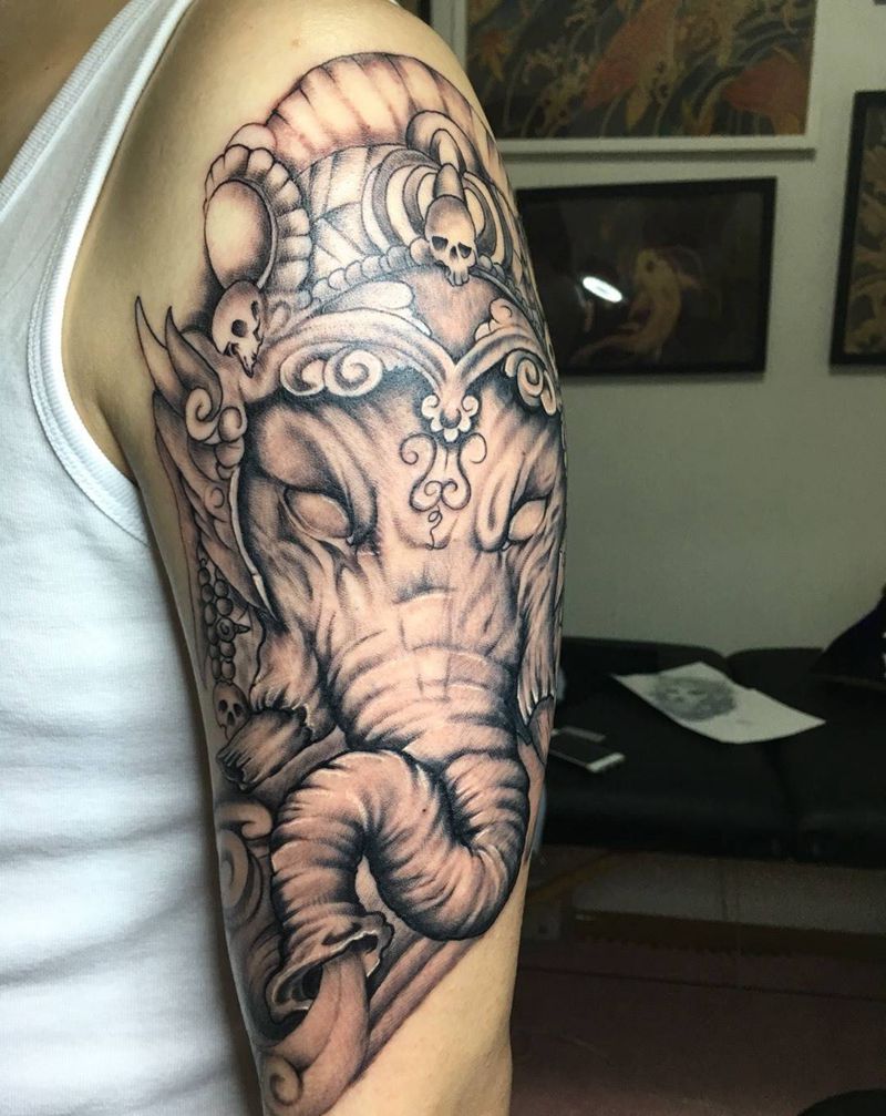 当前位置: 首页 >云南省昆明市纹身店-Yeci。Tattoo纹身图案>象神纹身图片