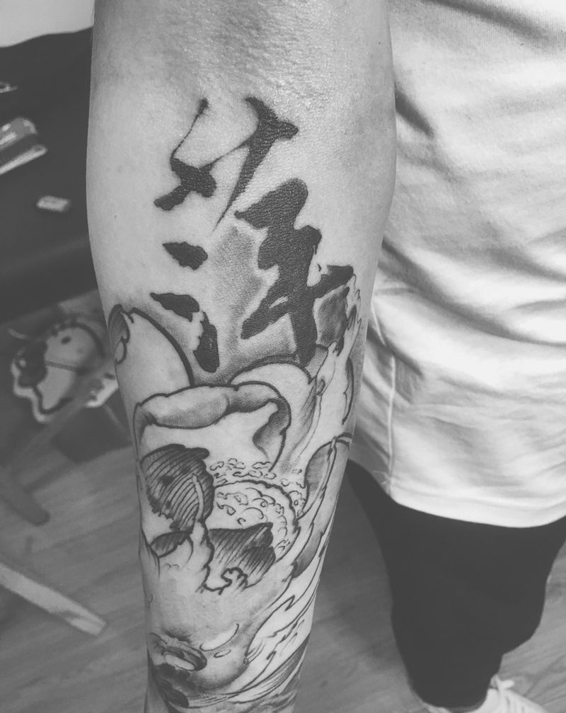 当前位置: 首页 >云南省昆明市纹身店-Yeci。Tattoo纹身图案>黑灰小臂。待上彩色纹身图片