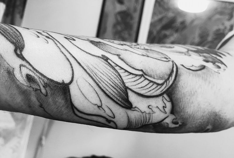 当前位置: 首页 >云南省昆明市纹身店-Yeci。Tattoo纹身图案>黑灰小臂。待上彩色纹身图片