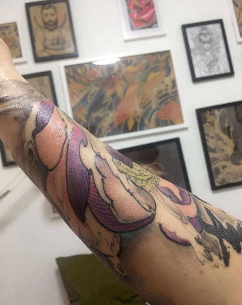 当前位置: 首页 >云南省昆明市纹身店-Yeci。Tattoo纹身图案>上色纹身图片_成品手臂传统纹身图案