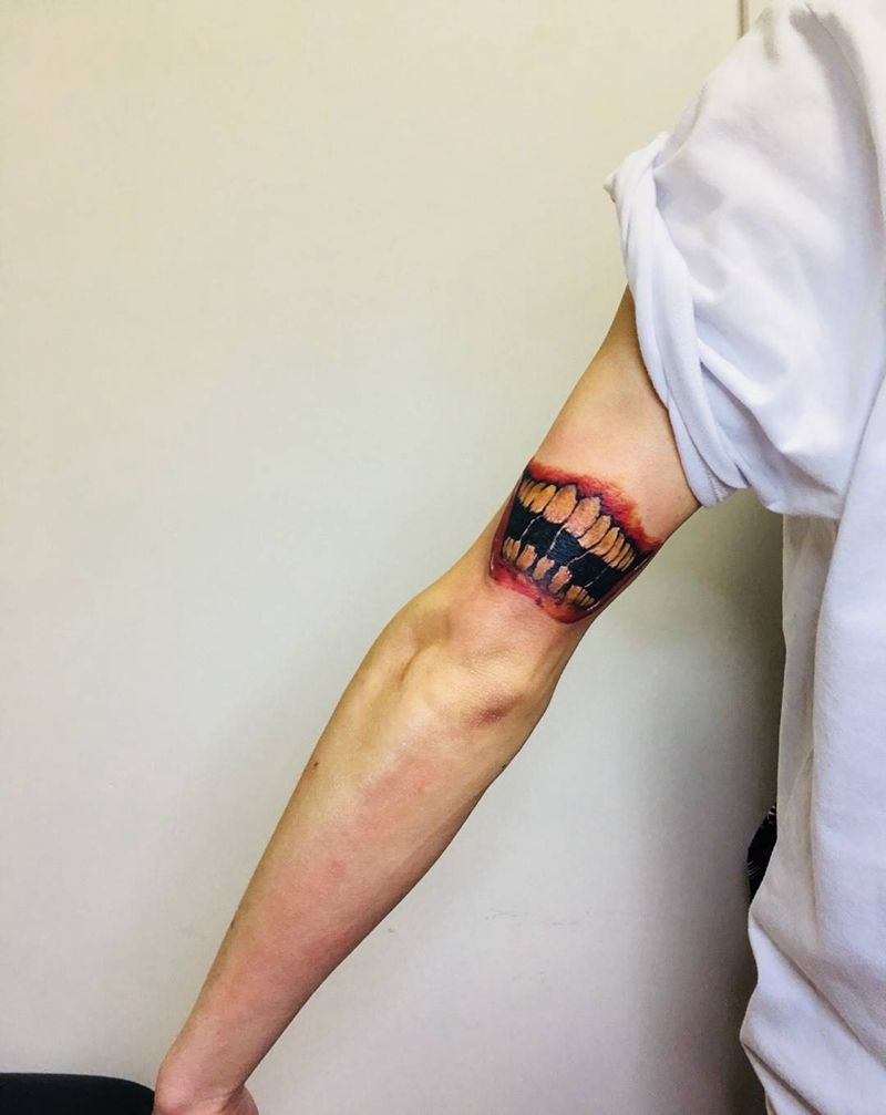 大嘴黄牙纹身图片_成品原创手臂纹身图案