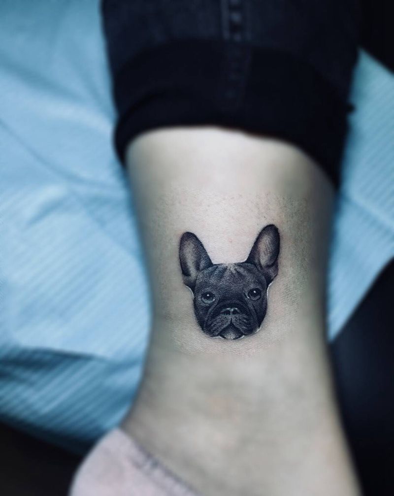 小狗子纹身图片_成品腿部脚部动物纹身图案