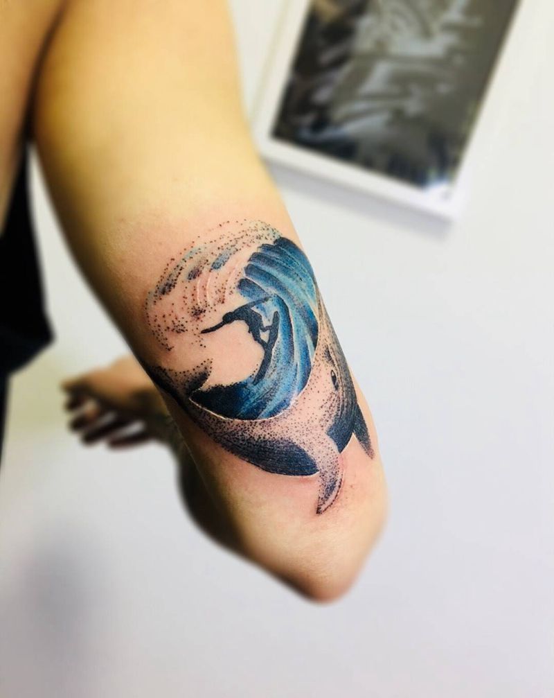 人。鲸纹身图片_成品手臂动物清新纹身图案