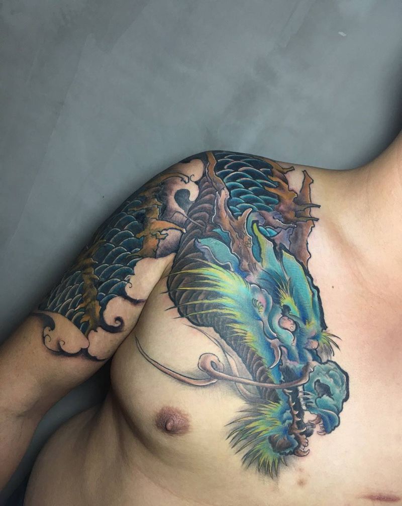 大龙遮盖纹身图片_手臂胸部新传统纹身图案