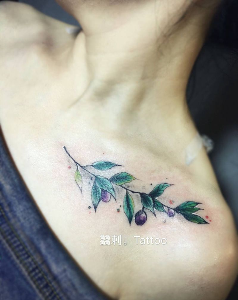 大西梅吧纹身图片_肩部胸部水彩纹身图案