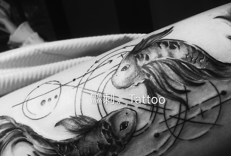 当前位置: 首页 >云南省昆明市纹身店-Yeci。Tattoo纹身图案>双鱼纹身图片_腿部几何纹身图案
