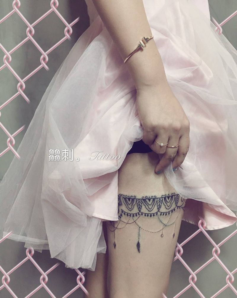 腿环纹身图片_腿部几何纹身图案