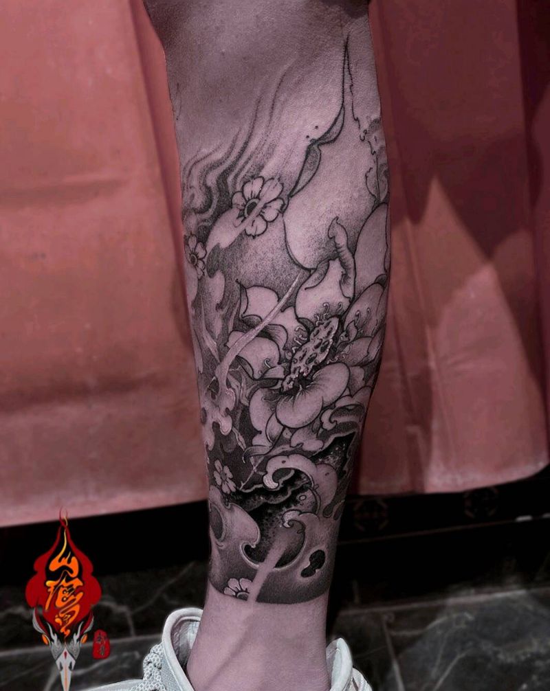 当前位置: 首页 >云南省昆明市纹身店-「蓬魚山」TATTOO—私人定制纹身图案>荷花纹身图片_腿部新传统荷花新传统鱼纹身图案
