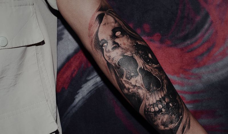 暗黑写实,骷髅丧尸纹身图片_手臂欧美写实暗黑写实骷髅纹身图案