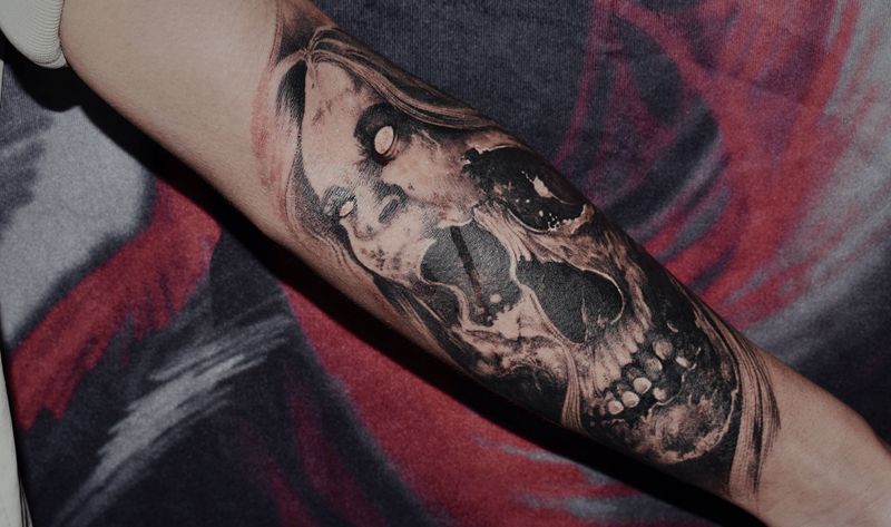 当前位置: 首页 >云南省昆明市纹身店-「蓬魚山」TATTOO—私人定制纹身图案>暗黑写实,骷髅丧尸纹身图片_手臂欧美写实暗黑写实骷髅纹身图案
